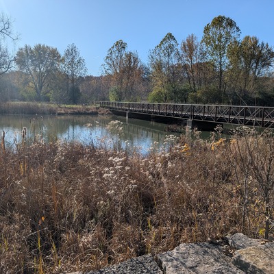 Kickapoo Creek Park, 2000 N. Jefferson St., Lincoln, IL pedestrian bridge on park road, 15 November 2025 -