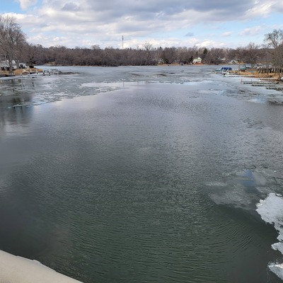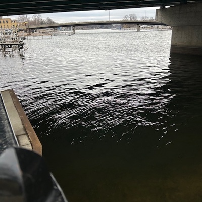 Fox River at Route 120 bridge in McHenry, 4 March 2025 -