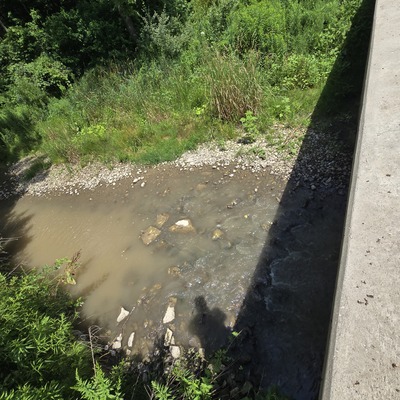 This tributary is feeding into Lake Erie at Port Glasow. Our test site was down the hill on Grey line to right of marina. There is a cement culvert. We tested on the lake side in the left front corner. You can access by going down bank beside culvert . The left culvert hole (from below) was dry and we took our sample from the rocks about 8 ft from culvert leading into water.