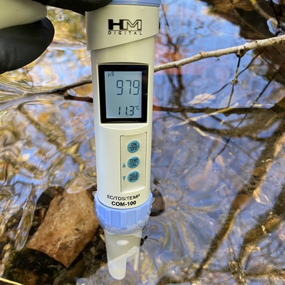 - slow moving water. Collection about one metre downstream from an outfall which in the future will be open to the elements rather than in a pipeline.