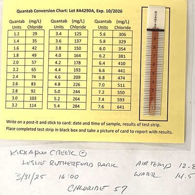 Kickapoo Creek at Leslie Rutherford Park has data for ph, chloride, conductivity, air_temperature, water_temperature, current_weather, previous_weather, Ice on, current_weather_description, and previous_weather_description from 4 December 2024 to 27 April 2025.