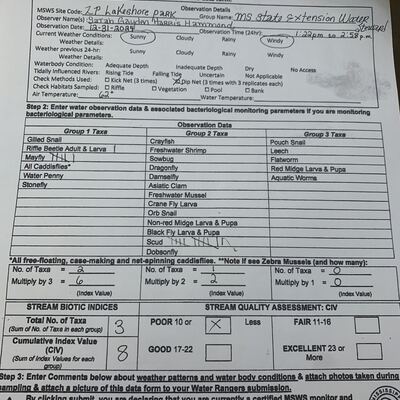 Lakeshore Park is located on the southeastern shore of the Barnett Reservoir in Rankin County. The property is maintained by PRVWSD as a swimming, boating, and picnic area. Access is from Northshore Parkway, about 1/2 mile north of Spillway Road. The sampling site is adjacent to a designated swimming area with sand bottom and narrow beach with a wooden pier. The site is heavily used in the summer months. Canada Geese and Mallards are numerous in the park, encouraged by feeding. The surrounding grass is kept mowed, allowing rapid runoff after rain events.