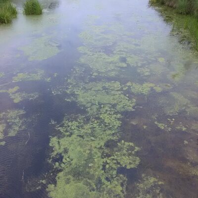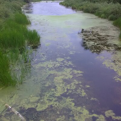 Small dock located on the river at the end of the boardwalk in the marsh at the education centre.