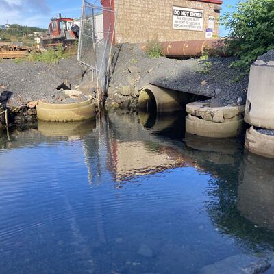 Small beach access next to large culvert just before entrance to Bay Bulls ship yard
