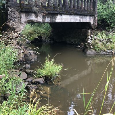 Between highway culvert and old bridge