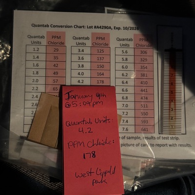 After the rain from last night, I went to collect the sample today, and it seems like due to the rain, the chloride increased significantly, while the pond was moving smoothly. The sky was a pretty site too, and not too windy!
