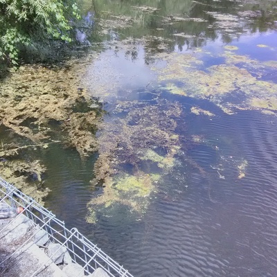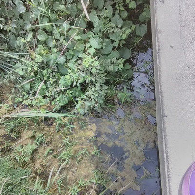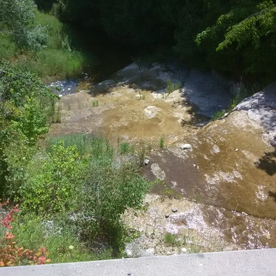 Stream flowing under Old Milford rd over falls into Milford Millpond, 30 July 2022 -