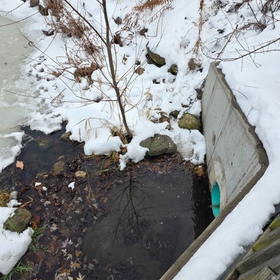 Creek under Fairmount Ave, east side of bridge, 10 December 2025 -