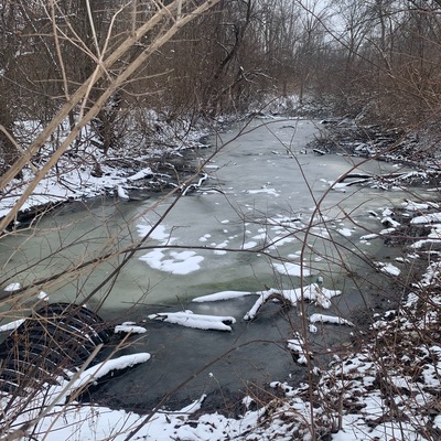 Black Creek footbridge from Shagbark Lane (Downstream), 27 February 2026 -